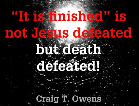 Q: How do we know we have a cup of righteousness in place of a cup of wrath? A: Dead saints of God were resurrected when Jesus died. “It is finished” was not Jesus giving up, but death giving up … it was not Jesus defeated, but death defeated!