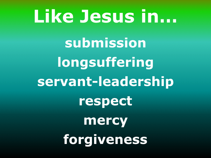 But Peter says, “Wives and husbands, exhibit the same submission, longsuffering, servant-leadership, respectful behavior, mercy and forgiveness toward your spouse as Jesus exhibited toward you!”