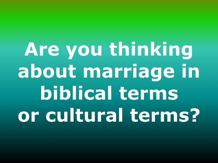 So the question we need to ask is: Am I thinking about marriage—a husband’s role, a wife’s role—in counter-cultural biblical terms or in popular cultural terms?