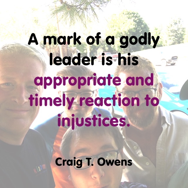 When a leader’s response is inappropriate to injustice, the followers’ response is likely to become even more so. Injustices must be dealt with in a God-honoring way: quickly and appropriately.