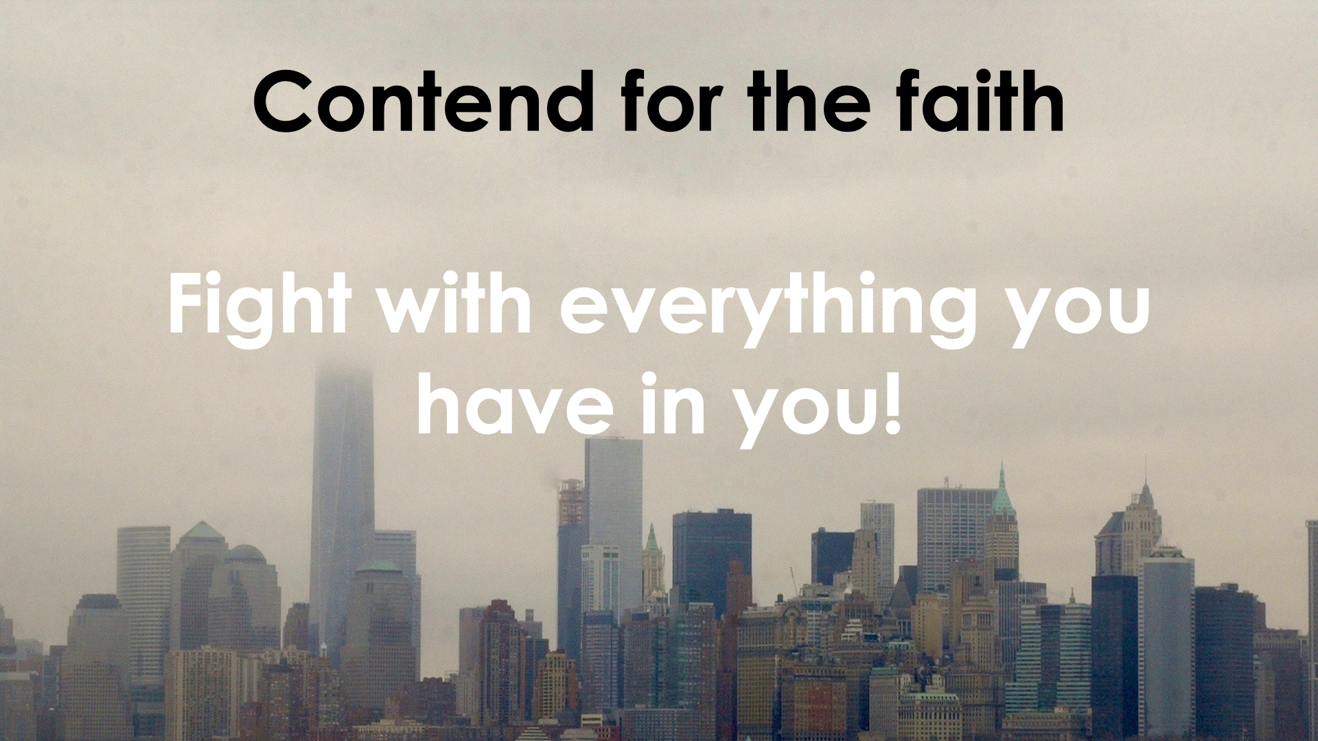 I like the phrase “contend for the faith” in the Message paraphrase: “Fight with everything you have in you.”