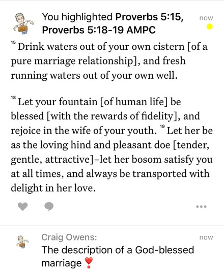 Solomon was so wise to write to us that our spouse should be the only one who captivates us … the only one who satisfies us … the only one who keeps making our hearts go pitter-pat! When we choose to see the best in our mate, we can keep that in love buzz going for the life of the marriage.