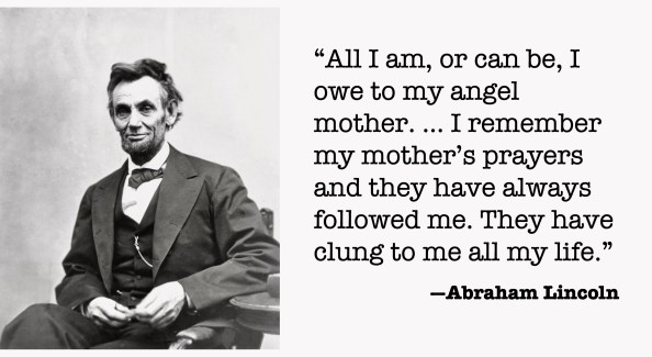 I am so grateful for the blessings of a godly mother and a godly wife! I can relate to Abraham Lincoln who said, “All I am, or can be, I owe to my angel mother. … I remember my mother’s prayers and they have always followed me. They have clung to me all my life.”