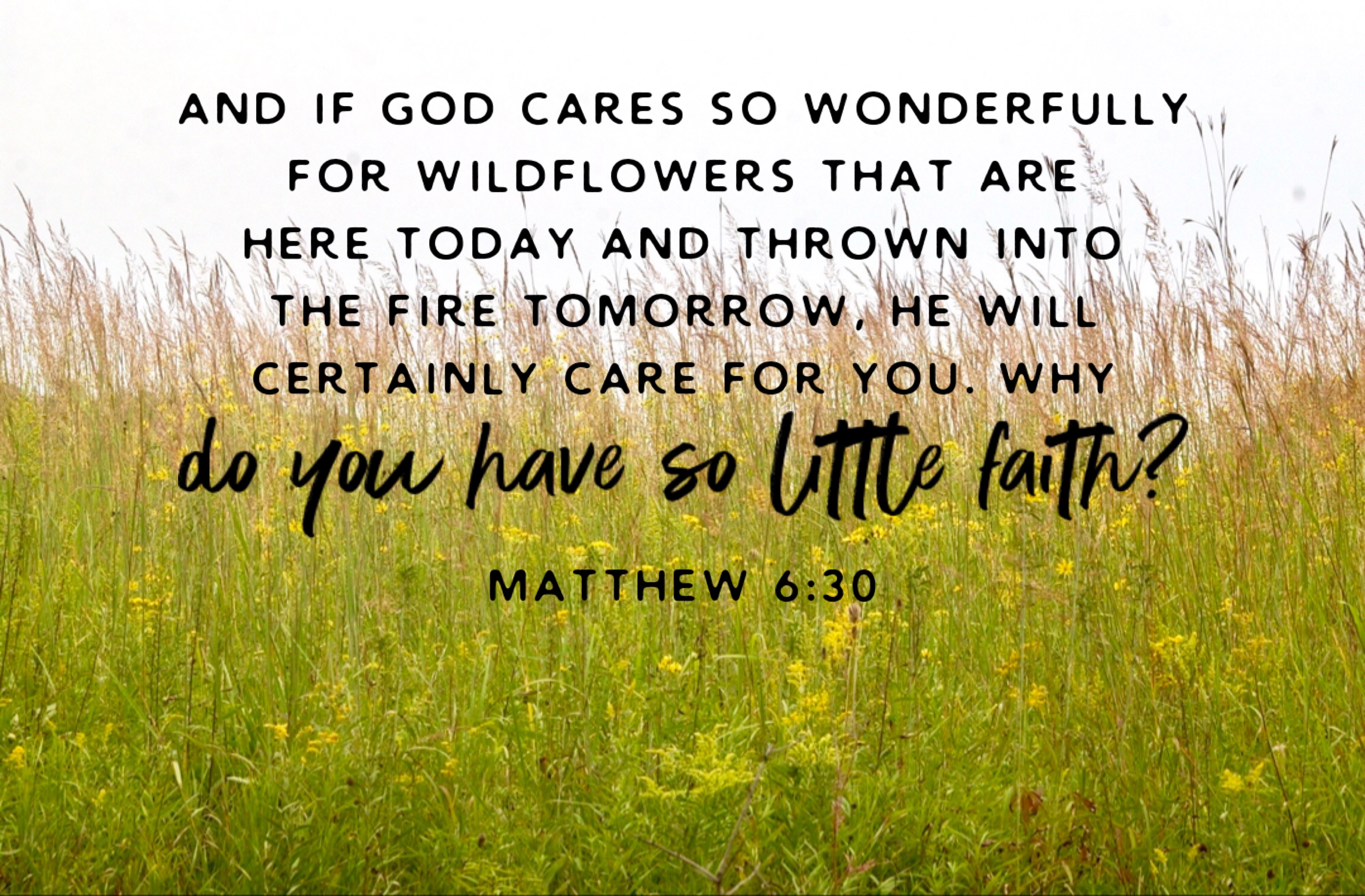And then as you take all of these in, remind yourself: “If God cares for the fields, if He sees the smallest sparrow, how much more does He care for me!”