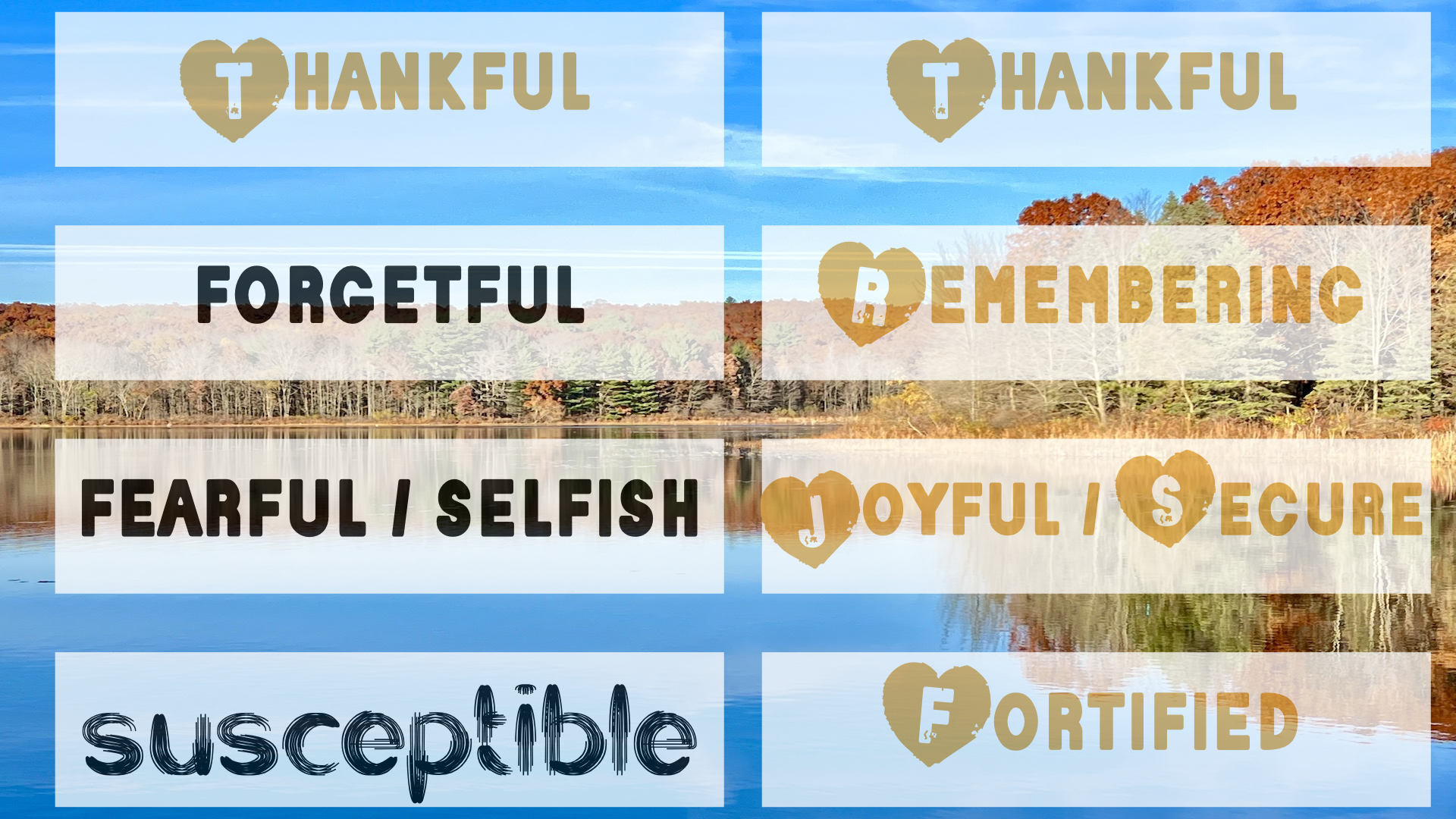 Thankfulness → Forgetfulness → Fearful / Selfish attitudes → Susceptible to the temptation to grumble against God