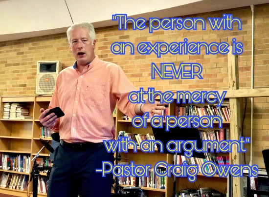 Remember that the person with an experience is never at the mercy of the person with an argument. When the Sanhedrin questioned the legitimacy of the healing of a lame man, Luke wrote, “But since they could see the man who had been healed standing there with them [Peter and John], there was nothing they could say” (Acts 4:14)!