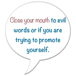 🚫 Close your mouth to evil words or if you are trying to promote yourself.
