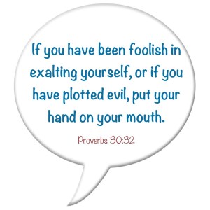 If you have been foolish in exalting yourself, or if you have plotted evil, put your hand on your mouth. (Proverbs 30:32)