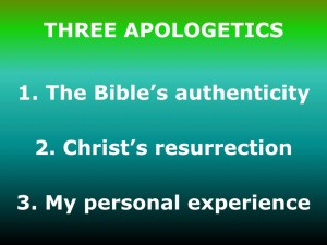 Peter tells Christians to be prepared to answer anyone for the reason for the hope that they have (1 Peter 3:15-16). The Greek word for “give an answer” is apologia, from which we get our word apologetic. Here are three apologetics for Christians to use for the hope that they have.