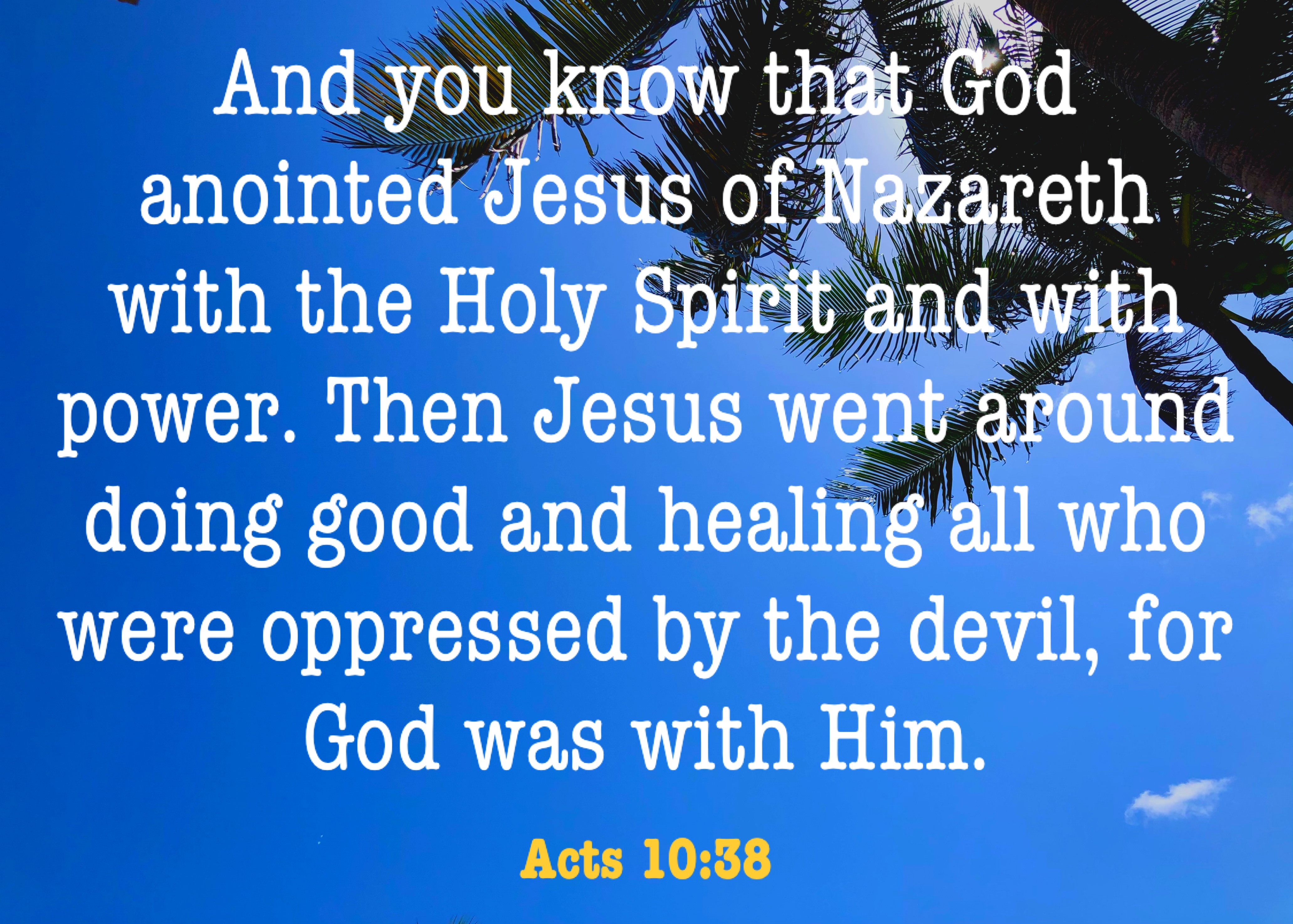 And you know that God anointed Jesus of Nazareth with the Holy Spirit and with power. Then Jesus went around doing good and healing all who were oppressed by the devil, for God was with Him. (Acts 10:38 NLT)