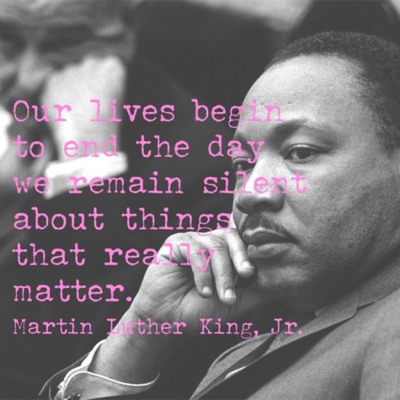 “Our lives begin to end the day we remain silent about things that really matter.” —Martin Luther King, Jr.