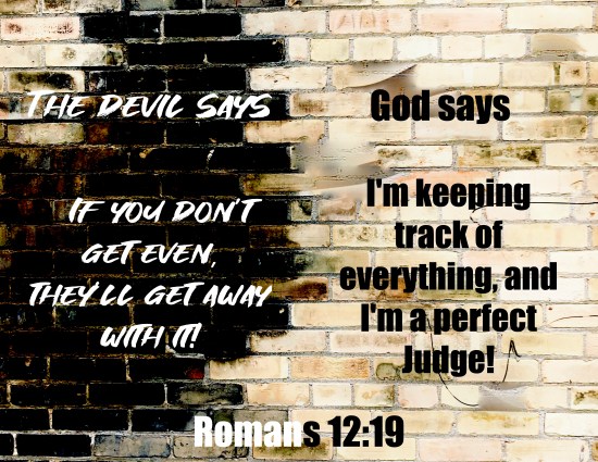 Victory comes only through Jesus. I have to relent trying to balance the scales of justice—this is never my place. If I try to make things right on my own, my so-called justice only sets off a one-upmanship shoving match that continues to escalate in very ungodly ways.