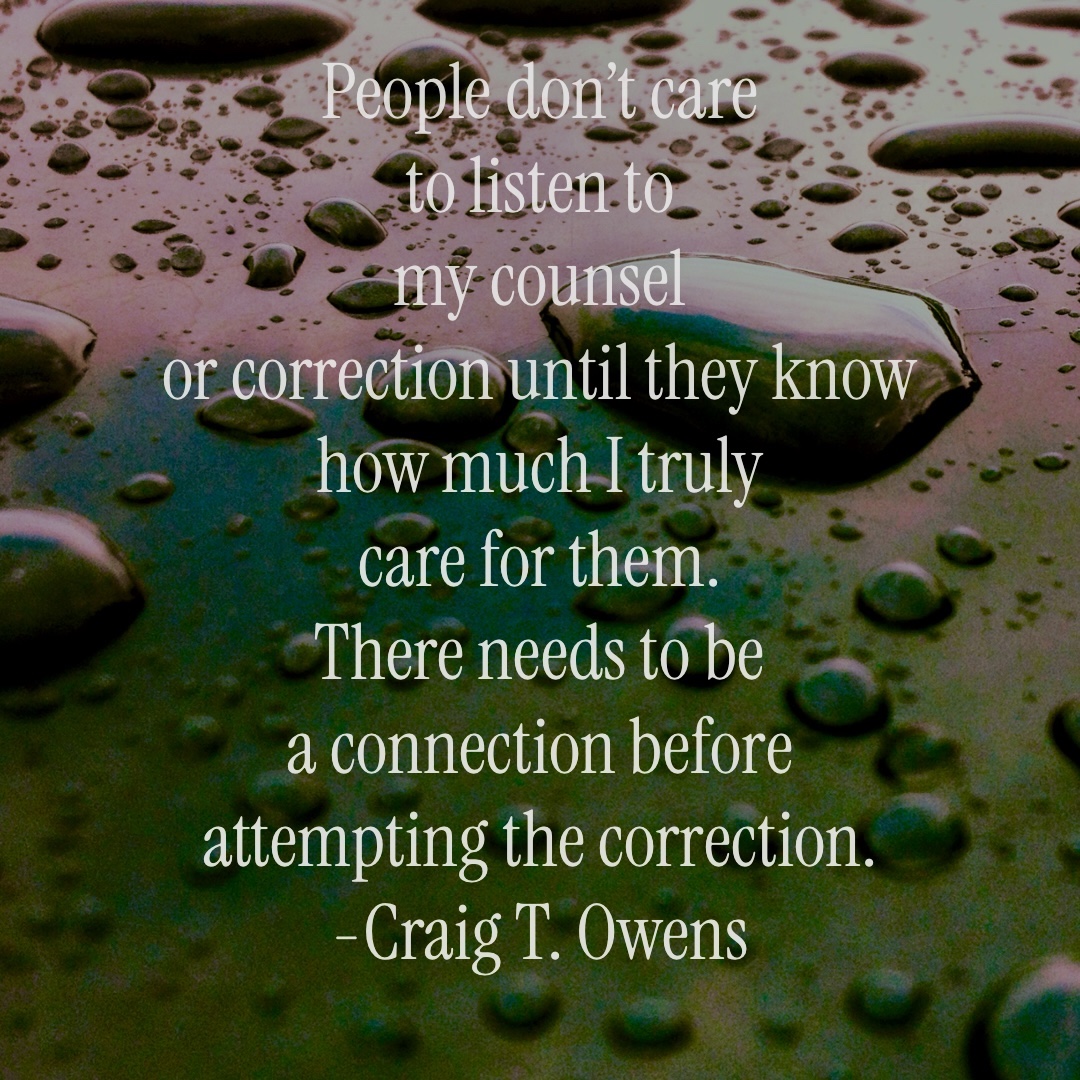 The truth does need to be spoken to wayward sheep, but it has to be birthed in love and spoken in love or else it will alienate more than help. People don’t care to listen to my counsel or correction until they know how much I truly care for them.