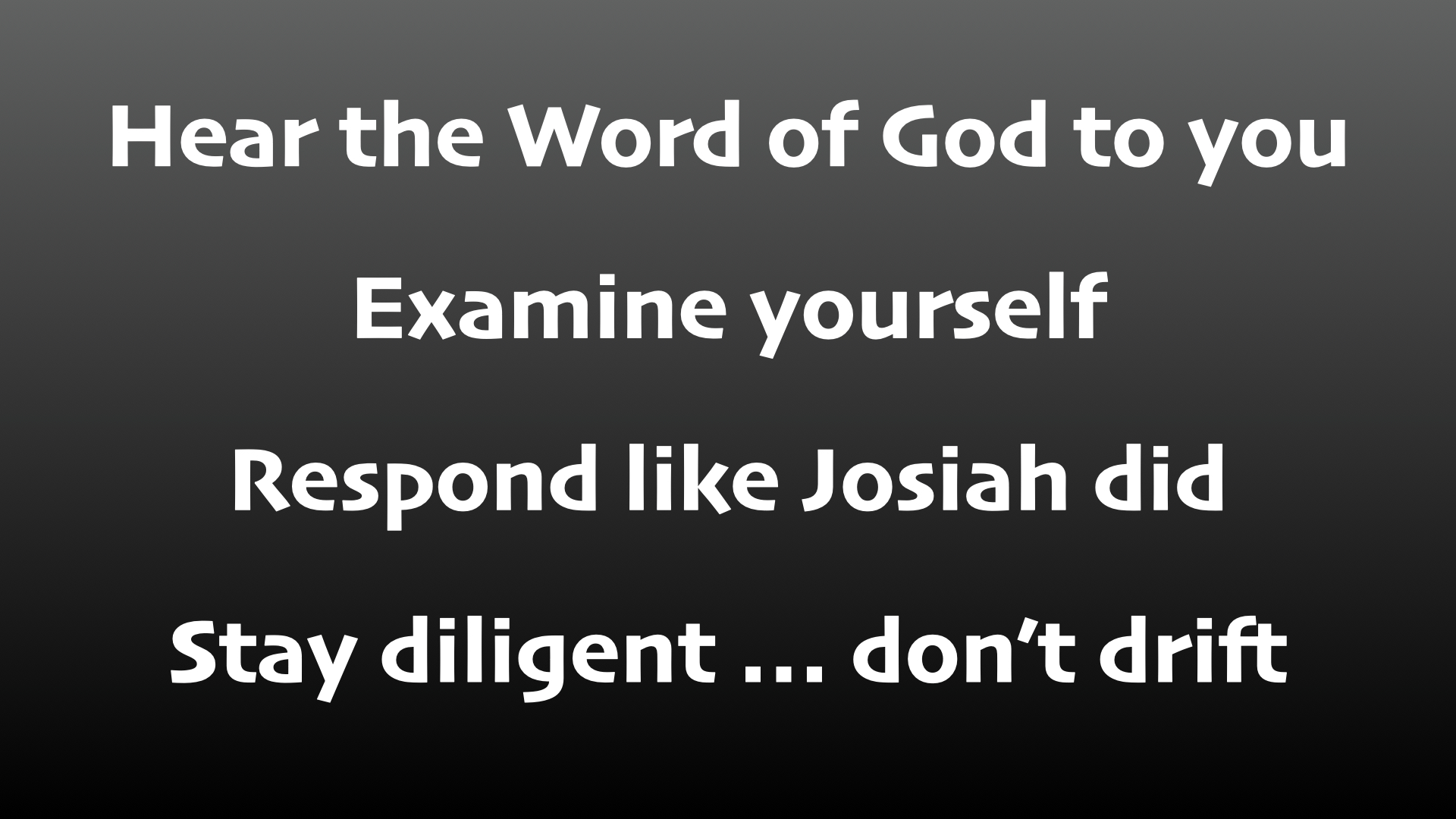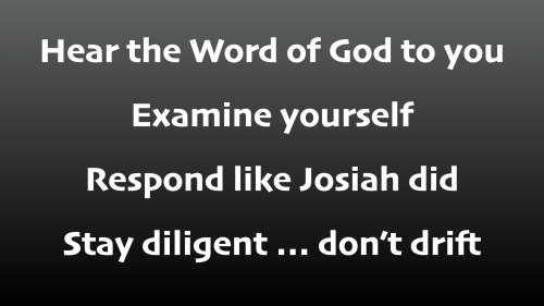 Respond like King Josiah did when he heard God’s Word: He made a public commitment “to follow the Lord and keep His commands, statutes and decrees with ALL his heart and ALL his soul” (2 Kings 23:3).